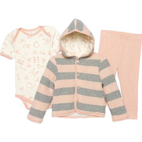BURT'S BEES BABY Infant Girls Letter Bee Insulated Jacket, Baby Bodysuit and Pants Set - Short Sleeve