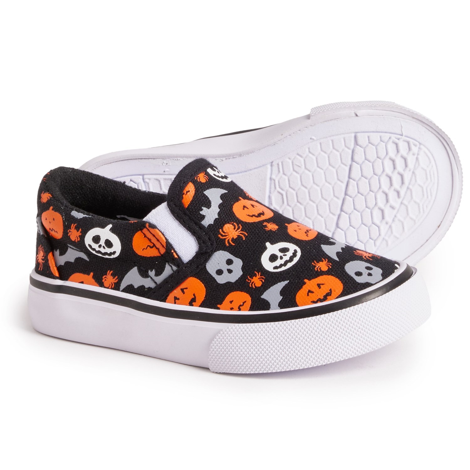 Excess. Keep your little one's feet comfy this spooky season with these Goblin & Ghoul Halloween Print shoes, crafted in durable canvas with a cushy insole, grippy outsole and cute allover print.